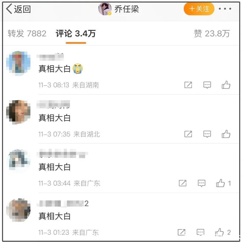 有网友发现有人在乔任梁评论区一直留言“真相大白”,点进主页一看全是水军,似乎是有预谋有组织的刷屏,乔任梁的评论数都刷到100+了。