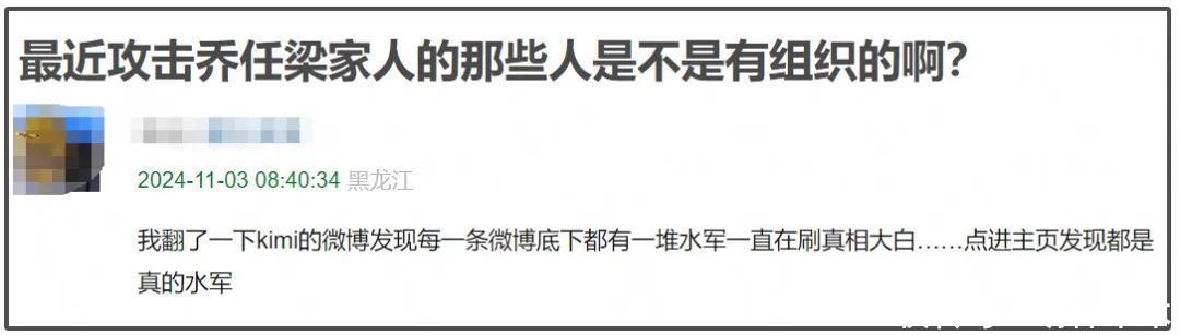 这群人混在粉丝中间,不断地带节奏、编故事,炒作社会舆论,目的是什么不言而喻,一些人不明辨是非,乔家人也因此遭到了网暴。
